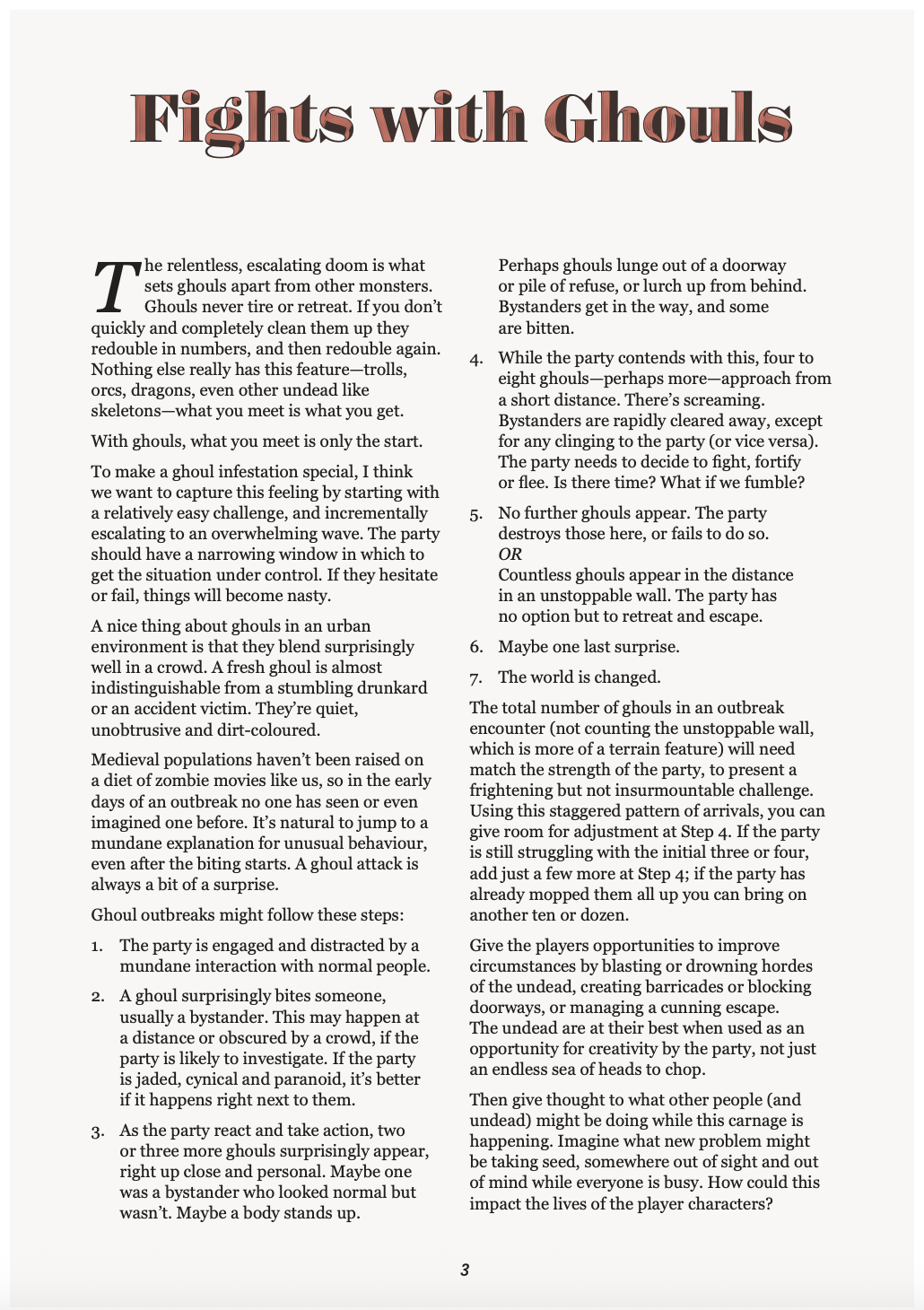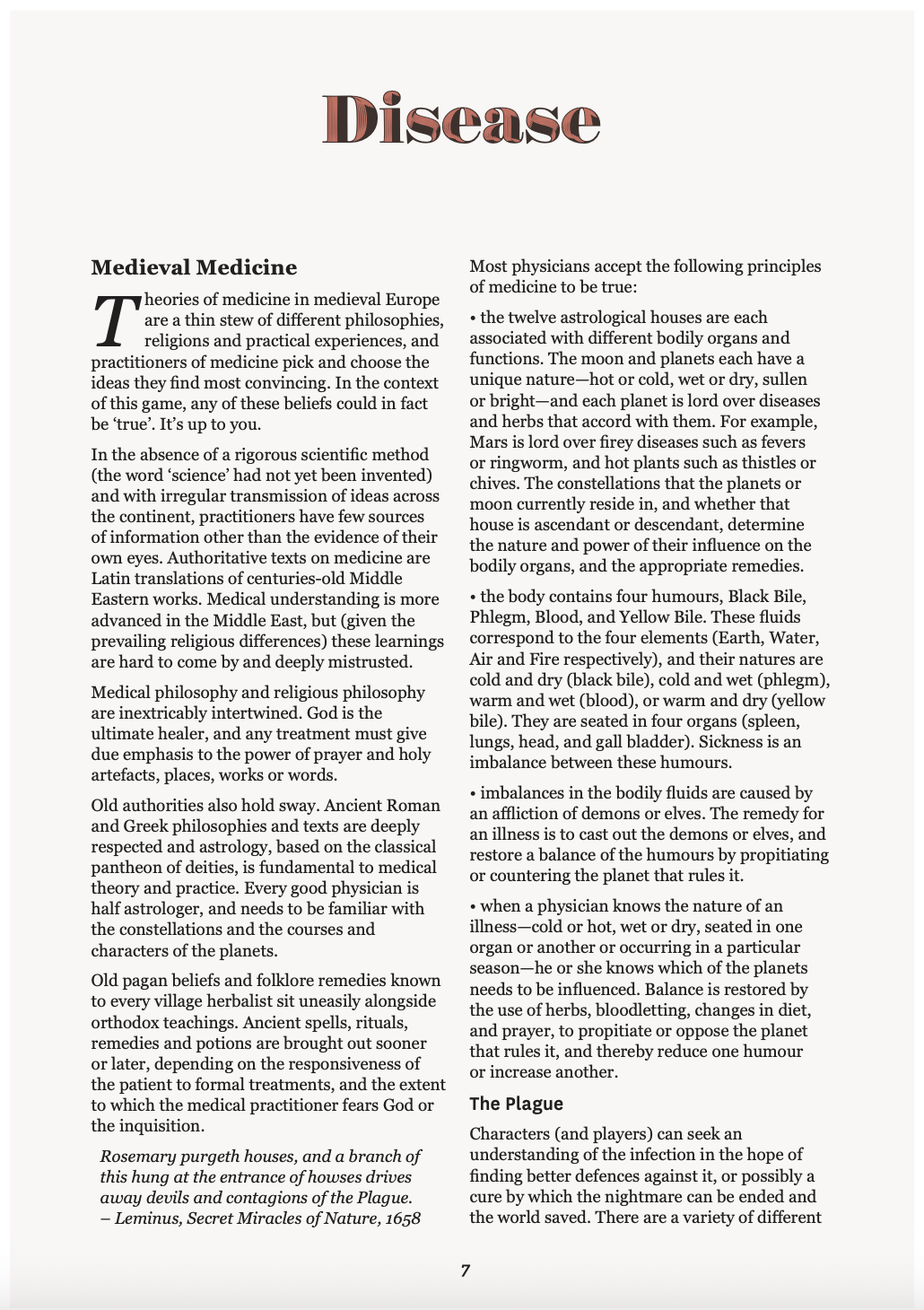 This material is still complementary to that system, but I hope will also add to any other game that features medieval times, or a plague of ghouls, or preferably both.